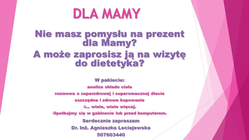 Już wkrótce…. Święto naszych ukochanych mam, którym jak co roku nieustająco życzymy wszystkiego najlepszego. A co z prezentem? Oczywiście kwiaty. A może dodatkowo w tym roku coś niestandardowego? Na przykład wizyta u dietetyka – super prezent dla mam, nie tylko tych, które mają kłopoty ze zdrowiem. Zapraszam#Zdrowadieta