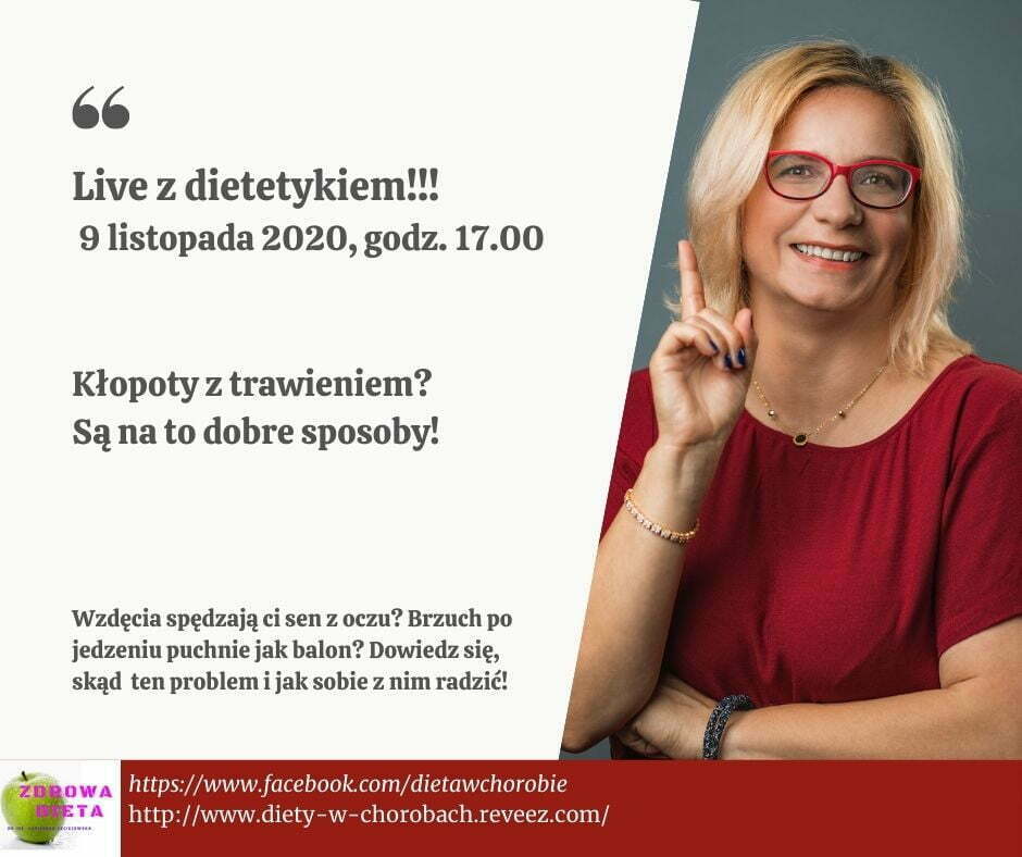 Zapraszam na kolejne spotkanie z cyklu Live z dietetykiem. Tym razem porozmawiamy o nieco wstydliwym problemie, jakim są uporczywe wzdęcia. Wystarczy “zameldować się” na mojej stronie https://www.facebook.com/dietawchorobie dieta 9 listopada w poniedziałek o godzinie 17.00. Wcześniej można przygotować, np. herbatkę z bazylii, która pomoże nieco złagodzić wzdęcia. Zainteresowanych proszę o przygotowanie pytań. Mam nadzieję, że będzie się działo, a tematów do dyskusji nam nie zabraknie. Do zobaczenia wkrótce!!!